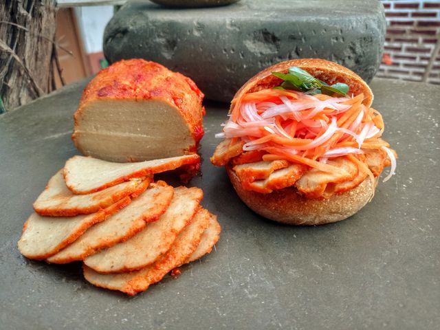 400 gramos. Lomo de seitan con tofu, arveja seca, leche de soya, pasta de ají, puré de vegetales y especias. Recepción de pedidos de miércoles a sábado, para entregar lunes o martes en el Pasaje San Rafael #238.